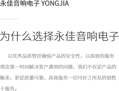 拉薩永佳音響電子有限公司 拉薩永佳音響電子有限公司坐落于美麗富饒的圣城拉薩,公司前身為拉薩昊成音響電子銷售有限公司,注冊資金為300萬元,成立于2010年3月公司地址位于西藏拉薩市貢布塘南側(cè)1號薩博廣場4-5、4-8號。拉薩永佳音響電子有限公司主營專業(yè)舞臺音響設(shè)備、會議音響系統(tǒng)設(shè)備、公共廣播音響系統(tǒng)設(shè)備、網(wǎng)絡(luò)及監(jiān)控設(shè)備、多媒體教學設(shè)備、多媒體投影機、幕布、弱電線材、辦公設(shè)備、LED液晶顯示屏品種齊全、服務(wù)效率、拉薩